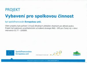 V loňském roce jsem získali projekt podpořený SZIF, přes oblast podpory rozvoje venkova PRV, na nákup nových překážek pro naše členy z řad dětí a mladých jezdců.
